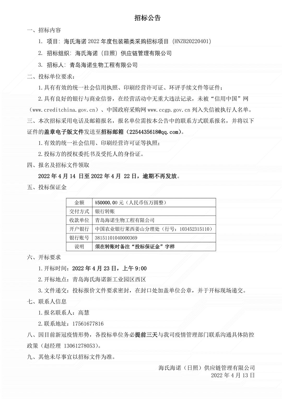 尊龙·Z62022年度包装箱类采购招标项目正式开始,届时我们将秉承公正、公平、公开、透明的招标原则,期待优秀供应商的广泛参与。具体招标细节如下: